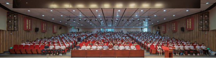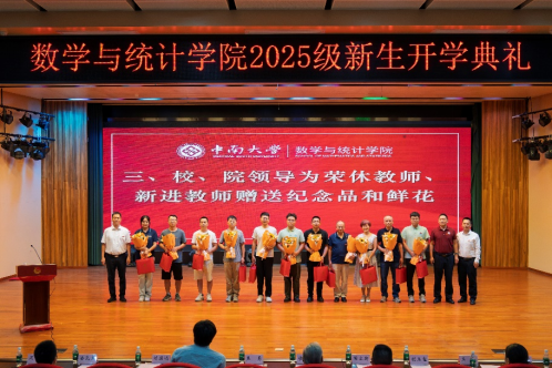 在毓秀楼和声堂举行2025级新生开学典礼暨老教师荣退、新教师入职仪式。校党委常委、副校长焦勇,著名数学家、“英国皇家戴维逊奖”和“华罗庚数学终身成就奖”获得者侯振挺,我院85级校友、特变电工衡阳变压器有限公司总经理、2025年“全国劳动模范”称号获得者周立新,宁德时代高级数据研究主任工程师林坤松以及学院党委书记胡玉玺、副院长(主持工作)刘源远、党委副书记杨雪宾、副院长潘克家、吴恋、周岳出席会议。学院全体2025级新生、辅导员、教师代表参加大会。