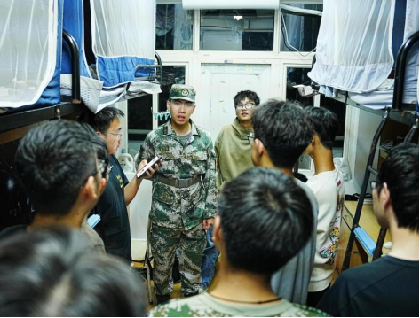 于10月15日晚间组织内务检查。本次检查由学院辅导员彭益康老师与军训教官共同主持,旨在保障学生们的生活环境整洁安全。