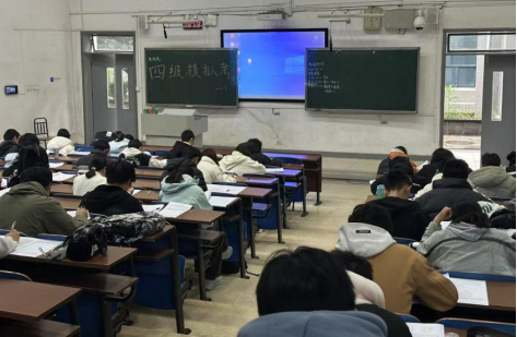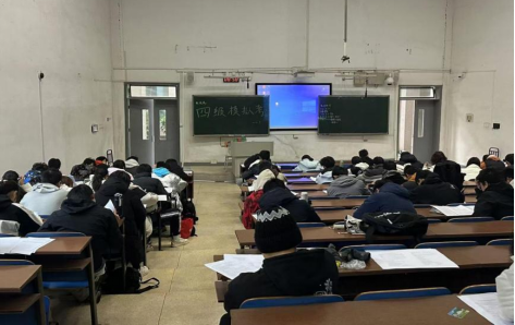 于2024年12月7日在新校区D座教学楼组织了一场英语四六级模拟考试。本次考试由数统院团委学生会学习实践部组织,吸引了230余名学生参加。