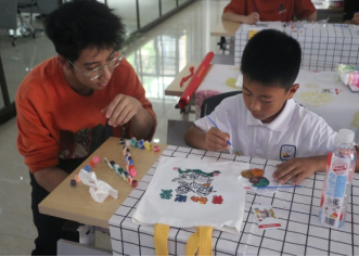 知识问答结束后,手工制作环节成为了孩子们展现创意的舞台。洁白的帆布袋上,印着工人、农民等“劳动最光荣” 主题的卡通绘图。孩子们手持画笔,认真地为图案上色。志愿者们穿梭其中,耐心指导。很快,一个个色彩斑斓的劳动主题帆布袋诞生,孩子们脸上洋溢着自豪的笑容。