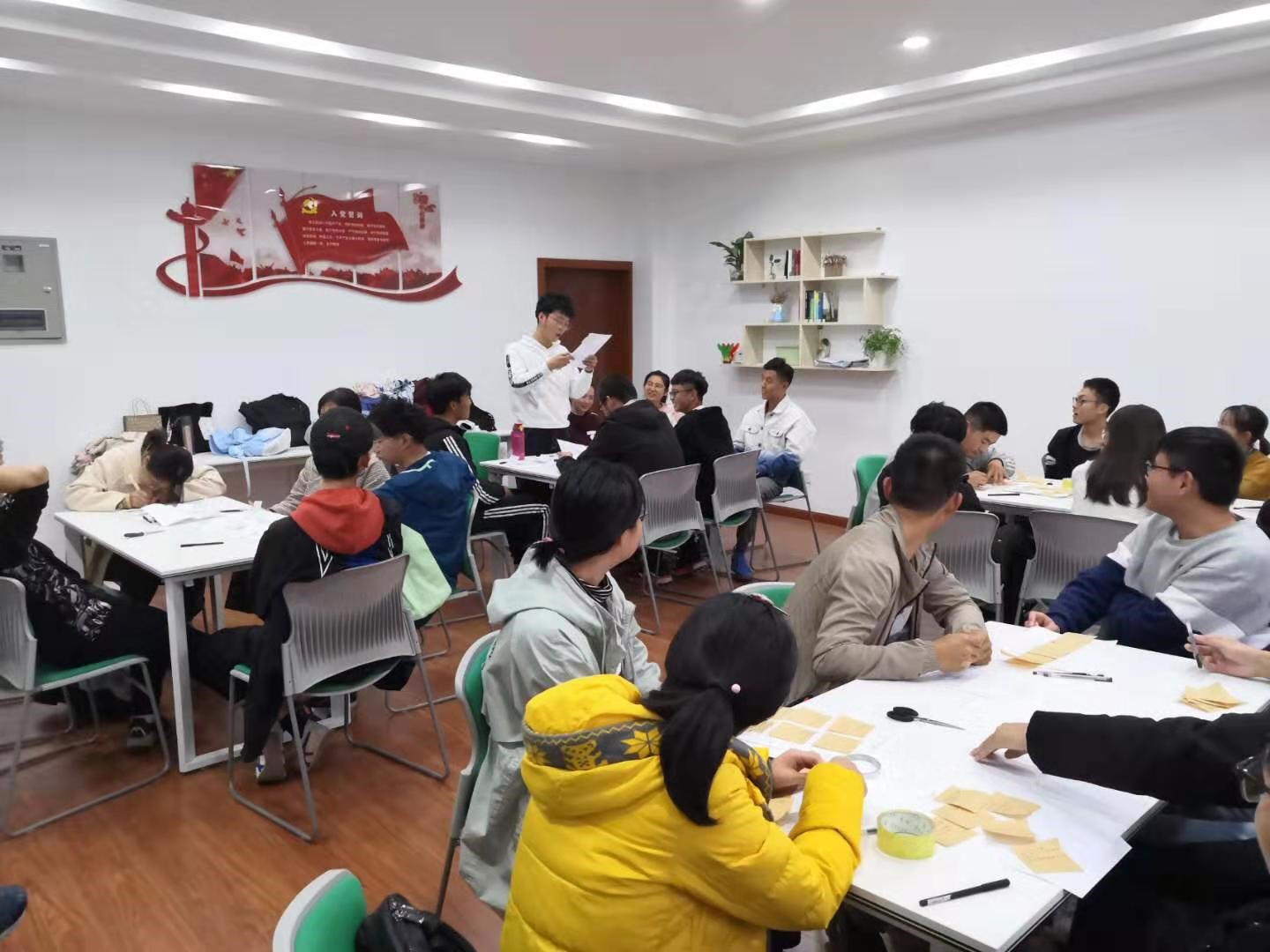 之后是答疑环节,王老师让同学们在便利贴上写下自己开学以来所遇到的困难,并在这些问题中随机抽取,就抽取到的问题和同学们进行深入的探讨。经过王老师的解答,同学们都受益匪浅,明白了如何协调学习和工作、如何面对学习上的困难和如何支配生活费等,知道了如何使大学生活变得更加精彩。
