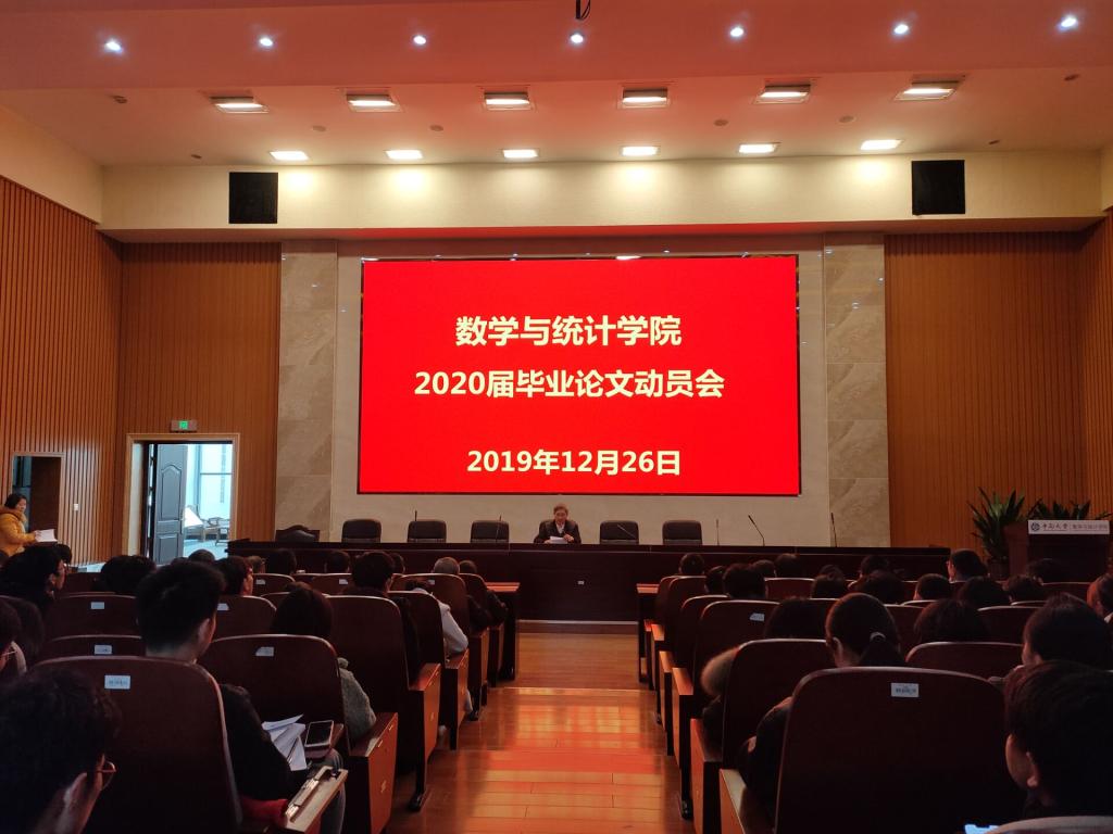 于2019年12月26日下午3:00在数理楼134报告厅召开了2020届本科毕业论文(设计)动员会,会议由数学学院教学副院长郑洲顺教授主持,2020届所有的本科毕业论文指导教师和2020届毕业生参加了会议,参会人数达270人,会议对2020届的本科毕业论文的各项工作做了详细的安排,重申了追剧达人